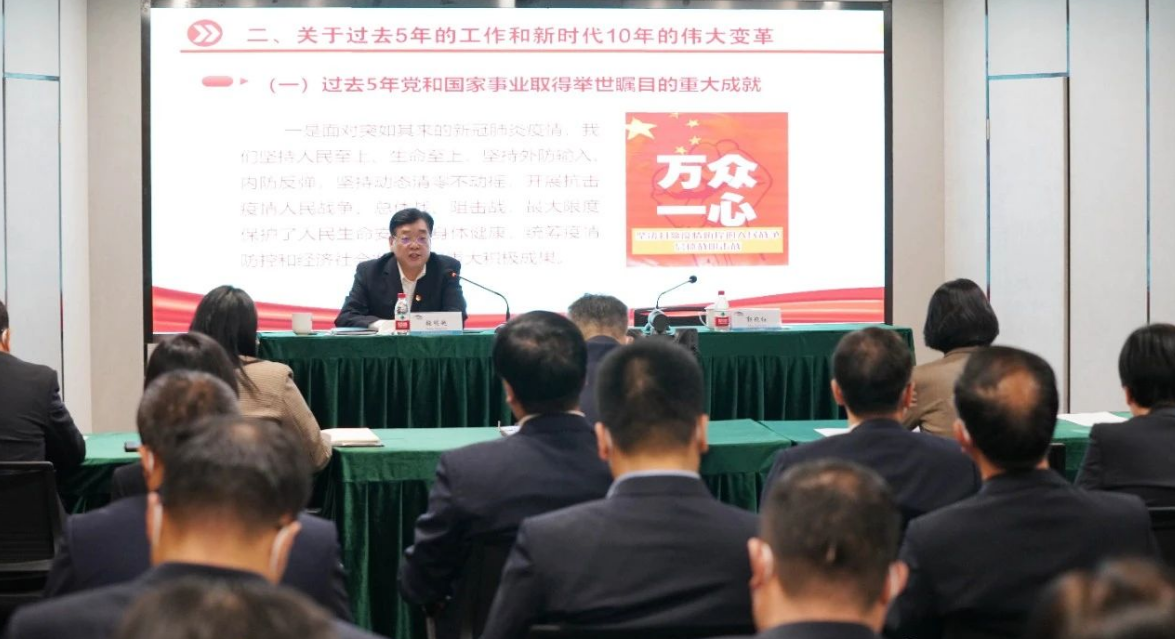 會(huì)上,張明超圍繞黨的二十大的主題和主要成果、過(guò)去5年的工作和新時(shí)代10年的偉大變革、馬克思主義中國(guó)化時(shí)代化、中國(guó)式現(xiàn)代化、全面建設(shè)社會(huì)主義現(xiàn)代化國(guó)家的目標(biāo)任務(wù)、堅(jiān)持黨的全面領(lǐng)導(dǎo)和全面從嚴(yán)治黨等方面,對(duì)黨的二十大精神進(jìn)行了系統(tǒng)宣講,并對(duì)學(xué)習(xí)領(lǐng)會(huì)習(xí)近平總書(shū)記視察延安和安陽(yáng)重要講話精神作了深入闡釋。