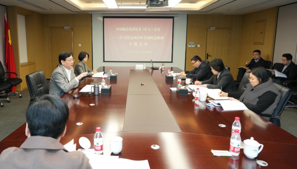 會議要求,要把學習全國兩會精神與學習貫徹習近平新時代中國特色社會主義思想和黨的二十大精神結合起來,與學習貫徹習近平總書記考察河南重要講話精神和關于“空中絲綢之路”建設重要指示結合起來。深刻領會兩會作出的工作安排,把握政策取向和發展機遇,為加快建設一流航產龍頭企業打開新思路、注入新動力。各級領導班子和領導干部要學深一層,切實發揮“頭雁”作用;各級黨組織要結合自身實際,以中心組學習、“三會一課”、“主題黨日”等為載體,組織好集中學習研討;利用好集團媒介載體,開展多角度、全方位的宣傳,推動兩會精神深入基層、深入一線、深入人心。