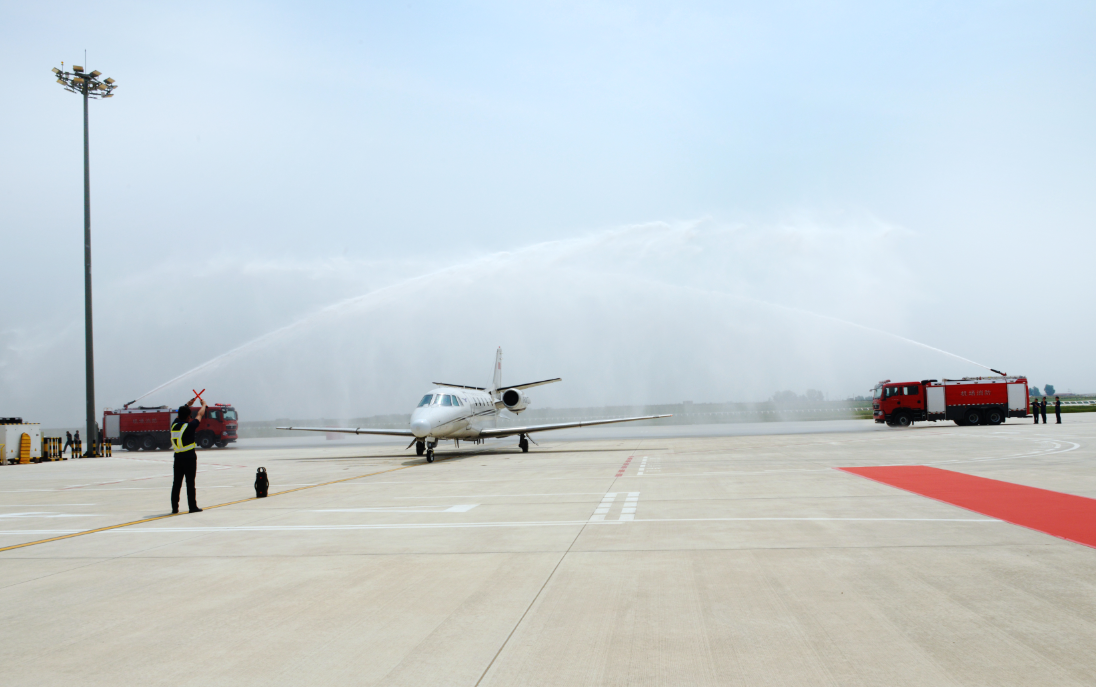 5月17日上午,隨著塔臺發(fā)出明確指令,一架“獎狀C560”平穩(wěn)降落在安陽紅旗渠機場,并接受“水門禮”。這是中國民用航空飛行校驗中心的校驗專用飛機,它的到來意味著安陽紅旗渠機場“第一飛”順利完成,校飛工作正式開始,標志著安陽紅旗渠機場從地面建設(shè)向開放運行的邁進。