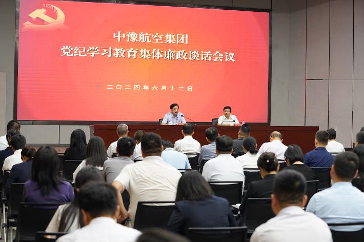 6月12日,中豫航空集團(tuán)召開黨紀(jì)學(xué)習(xí)教育集體廉政談話會議,集團(tuán)黨委書記、董事長張明超對所屬黨組織書記、組織人事部門負(fù)責(zé)人和年輕干部代表開展集體廉政談話。駐集團(tuán)紀(jì)檢監(jiān)察組組長張嘯主持會議。