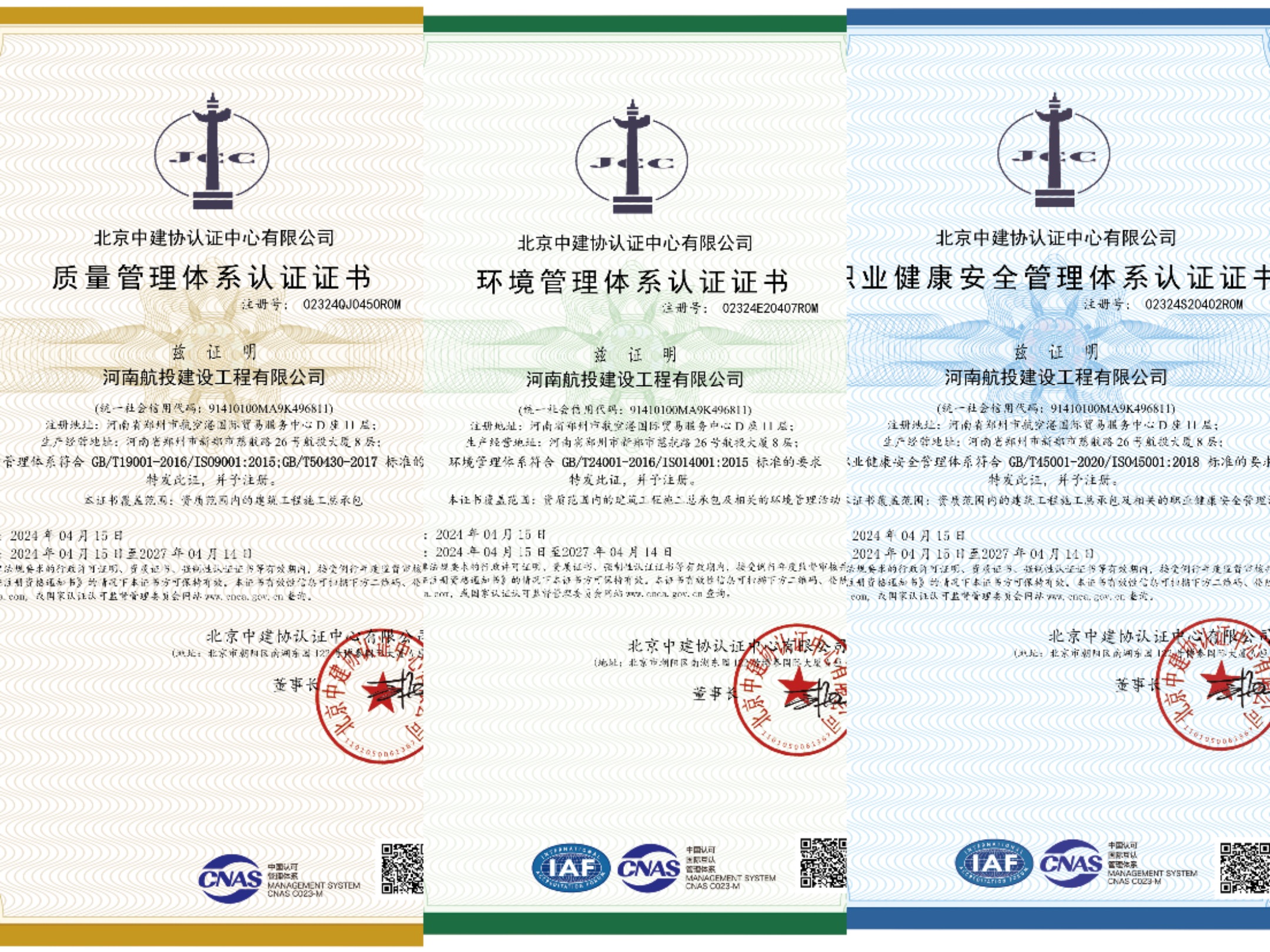 4月15日,河南航投建設(shè)工程有限公司(以下簡稱航投建工)通過ISO9001質(zhì)量管理體系、ISO14001環(huán)境管理體系、ISO45001職業(yè)健康安全管理體系(以下簡稱ISO三體系)認證并獲得證書,這標志著航投建工的規(guī)范化標準化管理邁上新臺階,為持續(xù)提升市場競爭力、拓展合作新領(lǐng)域打下堅實基礎(chǔ)。