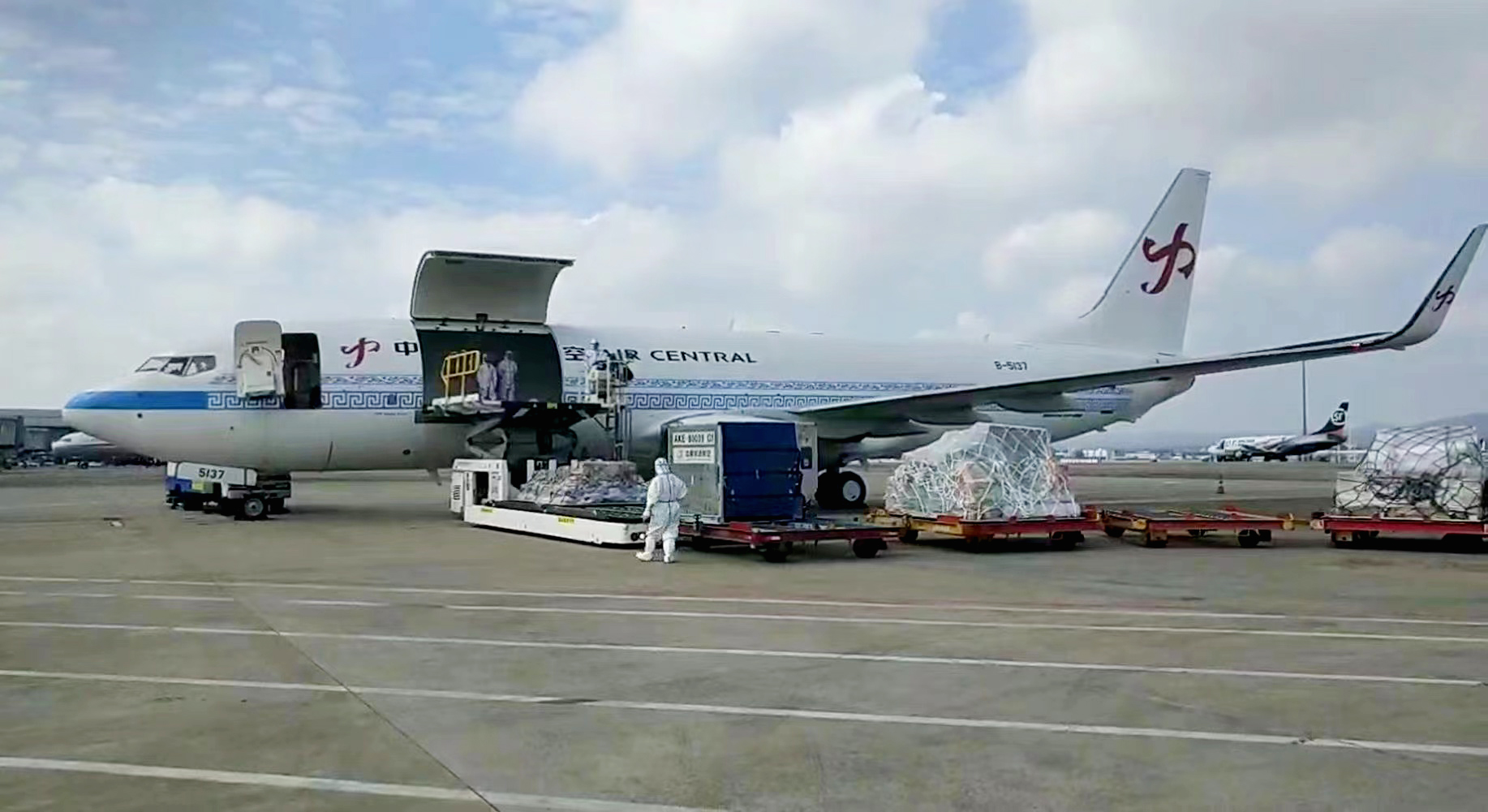 11月11日12時(shí)41分,中原龍浩航空一架滿載紡織輔料、工程配件等貨物的波音737-800全貨機(jī)從南寧吳圩國際機(jī)場順利起飛,尾翼上“中”字形Logo熠熠生輝,當(dāng)日15時(shí)許抵達(dá)越南胡志明市,標(biāo)志著中原龍浩航空又一條通往RCEP重要城市的國際貨運(yùn)航線正式開通,這也是中原龍浩航空新涂裝貨機(jī)的首次亮相。