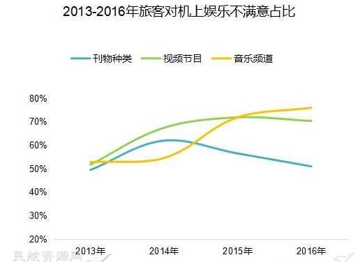 以上圖為例,音頻、視頻、旅客的滿意度一直在下降,不滿意度一直在上升。“就算機上娛樂項目更新得再快,做得再好,不可能滿足每一個旅客的個性化需求。但是只要打通了一個環節,把互聯網接上了,聊微信也好,聽QQ音樂也好,還是聽其他的音樂也好,那都是旅客自己的事情,旅客滿意度會得到最大程度的提升。”